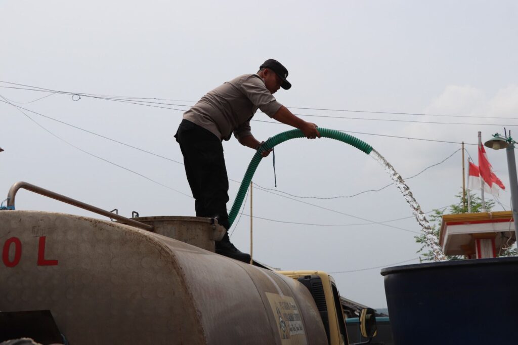 Satu unit mobil tangki berisi air bersih dikerahkan ke lokasi dan langsung mengisi dua tandon penampungan yang berada di RT 6 dan RT 7 RW 002 Dusun Kauman.