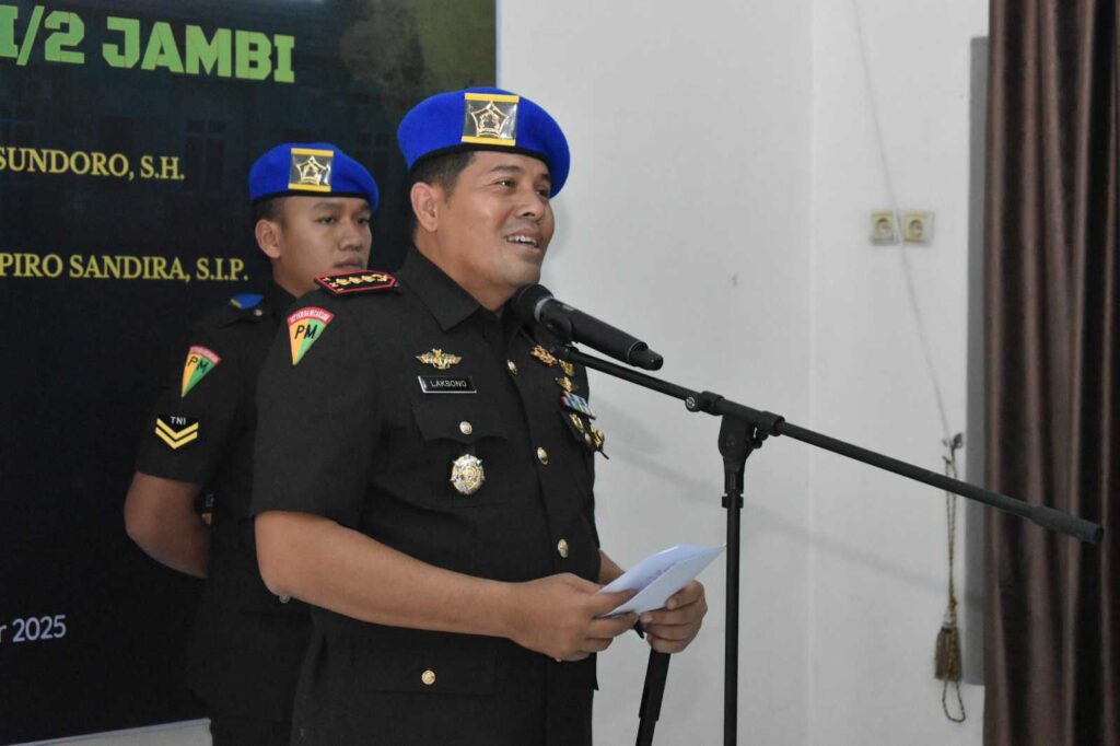 Danpomdam XX/TIB Kolonel Cpm Laksono Puji Lisdyanto, S.H memimpin serah terima jabatan Dandenpom Jajaran Pomdam XX/TIB di Aula Pomdam XX/TIB, Jln Bundo kandungan, No 6 Padang Barat, Kota Padang, Kamis (04/12/2025).
