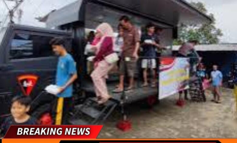 Sejak dibuka, mobil dapur lapangan tersebut langsung diserbu warga. Anak-anak, orang dewasa hingga lanjut usia tampak mengantre dengan tertib sambil membawa piring dan tempat makan. Mereka menerima paket nasi hangat lengkap dengan lauk mi instan dan telur, yang disajikan langsung dari Mobil Dapur Lapangan Brimob.