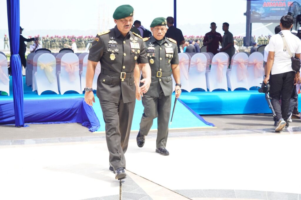 Dalam suasana penuh kebanggaan, Kaskostrad Mayjen TNI Sachono, S.H., M.Si., M. Tr (Han) bersama Panglima Divisi Infanteri 2 Kostrad Mayjen TNI Susilo menghadiri upacara Hari Ulang Tahun Armada Republik Indonesia yang digelar di Dermaga Ujung, Surabaya. Kehadiran para pemimpin Kostrad menegaskan eratnya sinergi antara matra darat dan laut dalam menjaga keutuhan bangsa. (Surabaya, 5 Desember 2025).
