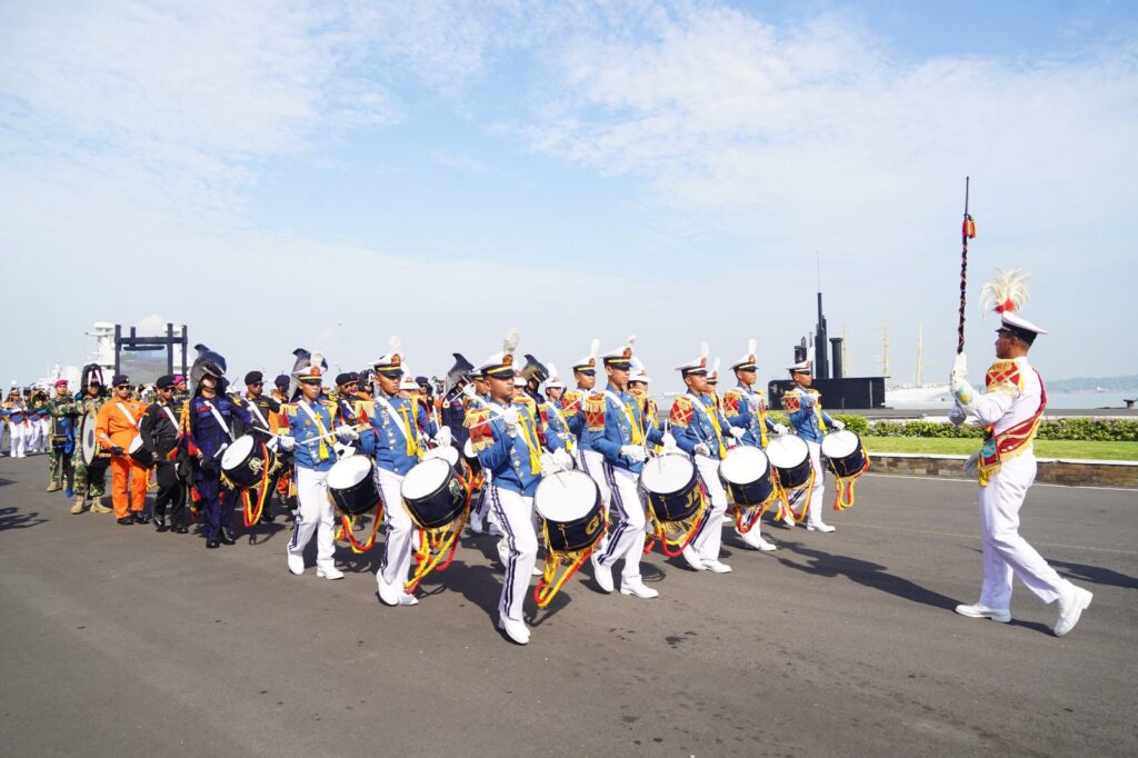 Upacara peringatan berlangsung khidmat dengan barisan prajurit Angkatan Laut yang tegak berdisiplin, diiringi deretan kapal perang yang berlabuh gagah di dermaga. Lantunan lagu kebangsaan dan drumband menambah semarak, menciptakan suasana yang menggetarkan hati seluruh peserta. Kehadiran para tamu undangan, pejabat tinggi TNI, dan masyarakat memperlihatkan kebanggaan bersama atas kiprah Armada RI.