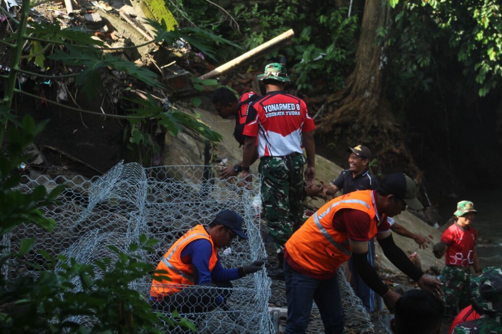 Setibanya di lokasi, Prajurit Yonarmed 8/UY langsung bergabung dengan warga dan BPBD untuk melakukan pembersihan material tanah dan pepohonan, meratakan area bantaran sungai, serta menyiapkan lokasi untuk pemasangan bronjong. Penguatan tebing menjadi fokus utama karena kondisi lereng telah menunjukkan retakan dan berpotensi kembali mengalami longsor jika tidak segera distabilkan.