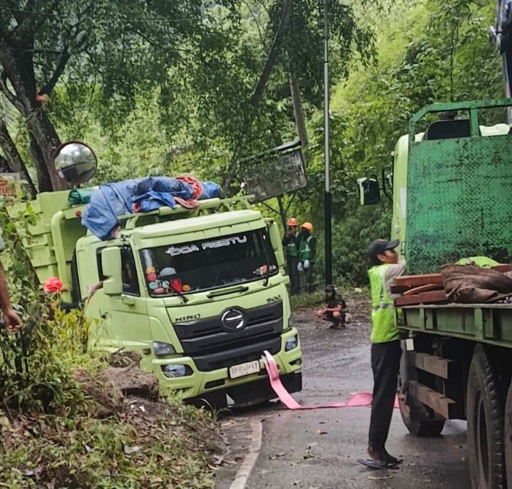 Kasat Lantas AKP Herman. SH memimpin langsung pengaturan arus lalu lintas. Meski kondisi jalan menanjak dan licin menyulitkan evakuasi, petugas tetap berupaya agar kendaraan yang melintas dapat bergerak perlahan sehingga kemacetan tidak semakin meluas. Hingga pukul 12.15 WIB, petugas masih berjibaku di lapangan untuk memastikan situasi tetap terkendali.