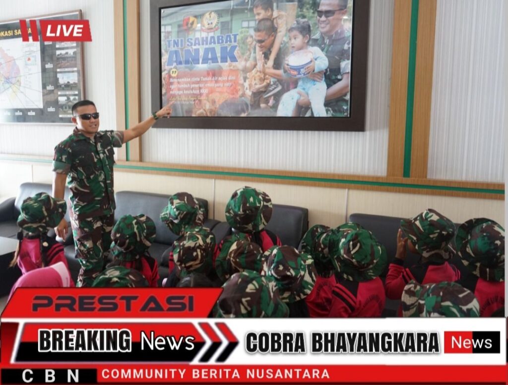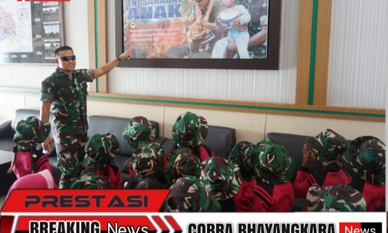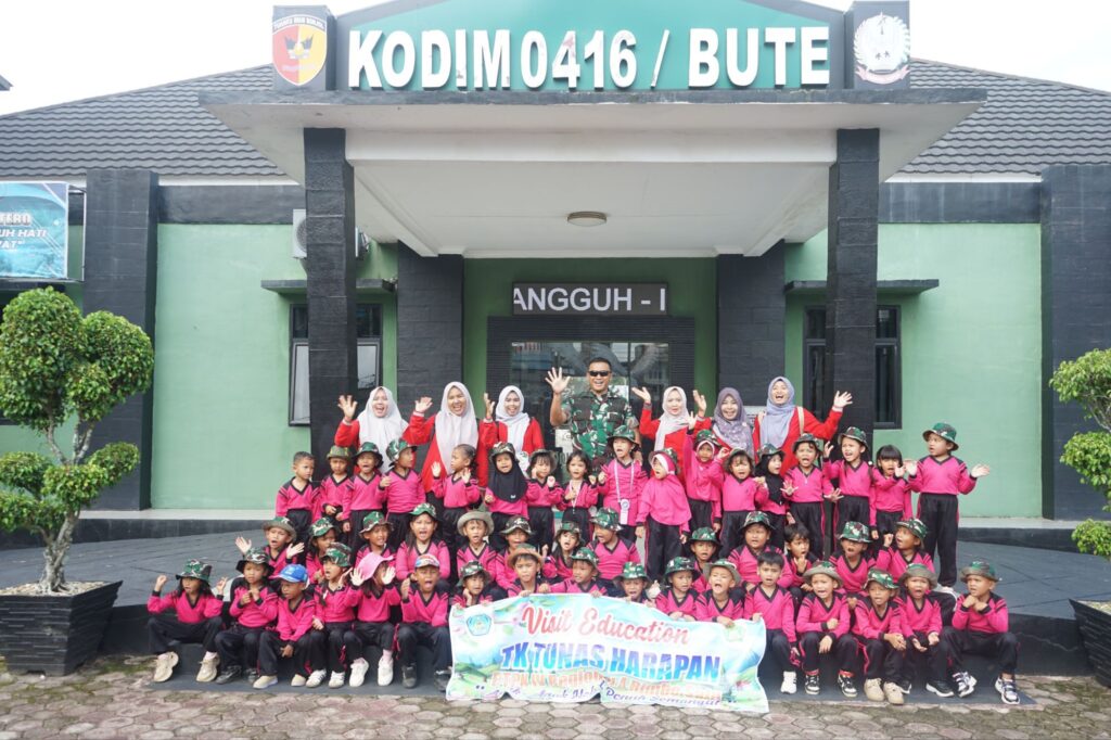 Suasana penuh keceriaan tampak menyelimuti halaman Makodim 0416/Bute ketika puluhan siswa TK Tunas Harapan PTPN IV datang berkunjung dalam rangka program TNI Sahabat Anak, Jumat (12/12/2025).