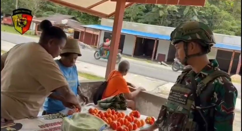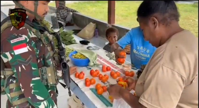 Satgas Pamtas RI PNG Kewilayahan Yonif 763/SBA Pos Aisyo laksanakan kegiatan komsos berupa membantu membeli hasil panen masyarakat Kampung Aisyo, Kabupaten Maybrat, Papua Barat Daya. (17/12/2025).