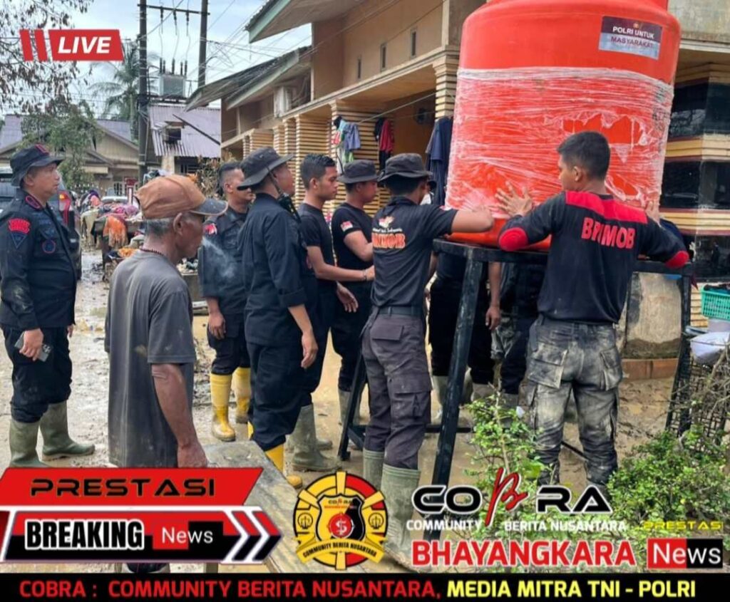 Salah seorang warga Desa Durian menyampaikan apresiasinya atas bantuan tersebut. “Sejak banjir, kami kesulitan mendapatkan air bersih. Kehadiran tandon air dari Brimob sangat membantu kebutuhan kami sehari-hari,” tuturnya.