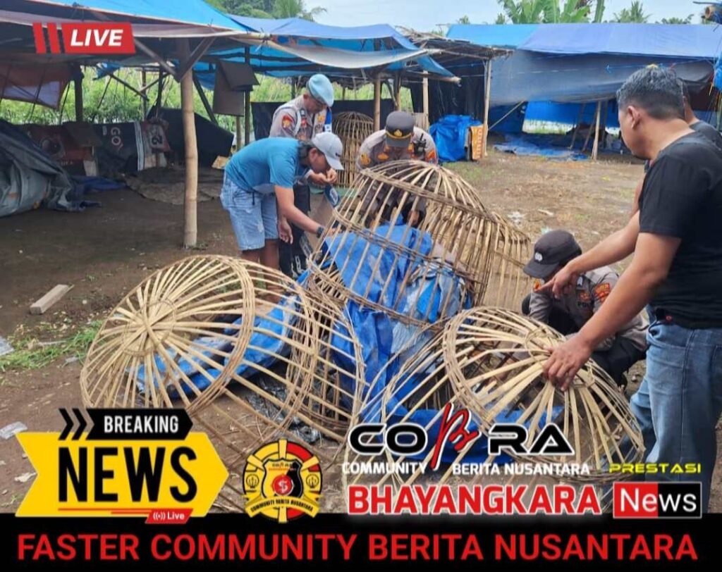 Sebagai langkah antisipasi dan bentuk peringatan, petugas kemudian melakukan pemusnahan terhadap fasilitas yang diduga digunakan untuk aktivitas judi sabung ayam, berupa kurungan ayam, terpal, dan karpet, dengan cara dibakar di lokasi.