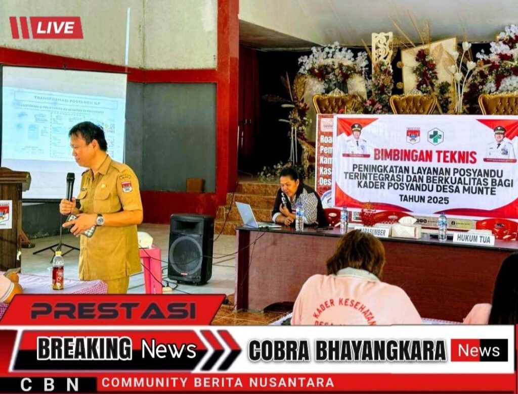 Hukum Tua Desa Munte, Oktavian Talopot, dalam sambutannya menyampaikan apresiasi dan komitmen penuh Pemerintah Desa Munte terhadap peningkatan kualitas posyandu sebagai garda terdepan pelayanan kesehatan masyarakat. Ia menegaskan bahwa keberhasilan posyandu sangat ditentukan oleh sinergi lintas sektor, kapasitas kader, serta partisipasi aktif masyarakat.