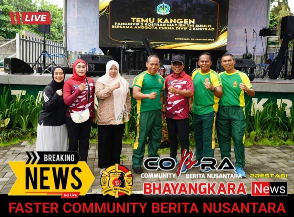 Pagi ini di awal tahun, suasana penuh kehangatan mewarnai Taman Cakra Kampoeng Tentara Divif 2 Kostrad, Singosari. Panglima Divisi Infanteri 2 Kostrad, Mayor Jenderal TNI Susilo, menggelar Olahraga Bersama dan Temu Kangen dengan para purnawirawan Divif 2 Kostrad. (Singosari 2 Januari 2026)