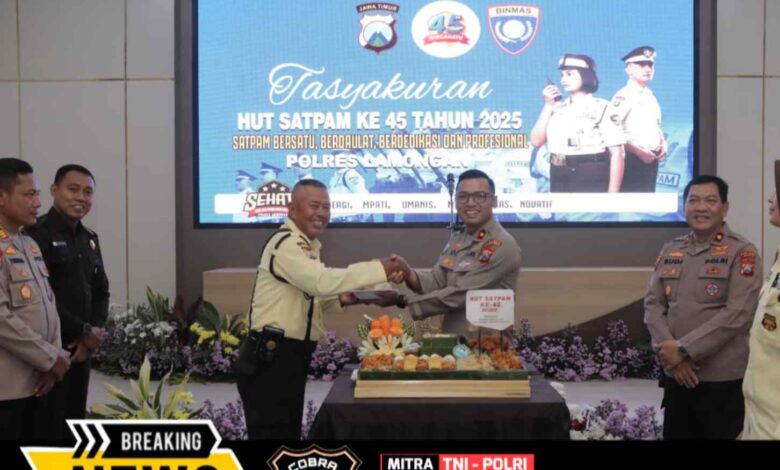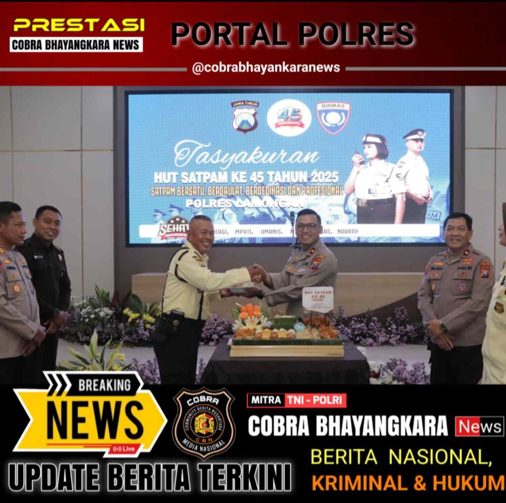 Polres Lamongan Polda Jatim menggelar kegiatan Tasyakuran dalam rangka memperingati Hari Ulang Tahun (HUT) Satuan Pengamanan (Satpam) ke-45 Tahun 2025.