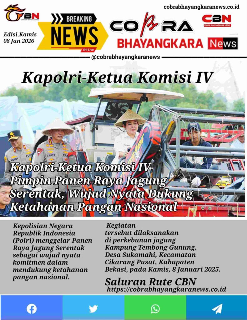 Kepolisian Negara Republik Indonesia (Polri) menggelar Panen Raya Jagung Serentak sebagai wujud nyata komitmen dalam mendukung ketahanan pangan nasional. Kegiatan tersebut dilaksanakan di perkebunan jagung Kampung Tembong Gunung, Desa Sukamahi, Kecamatan Cikarang Pusat, Kabupaten Bekasi, pada Kamis, 8 Januari 2025.