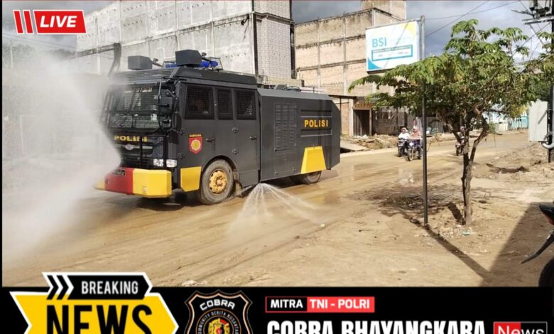 Water Cannon Disemprotkan di Jalan Lintas Aceh Selatan, Polri Minimalisir Debu Pasca Banjir