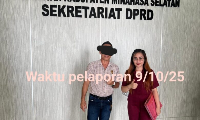 Laporan tersebut disampaikan Putri Elias secara resmi di kantor Dewan Perwakilan Rakyat Daerah (DPRD) Minahasa Selatan, tepatnya di Sekretariat Dewan, dan menurut pengakuan pelapor, laporan telah diterima oleh pihak sekretariat.