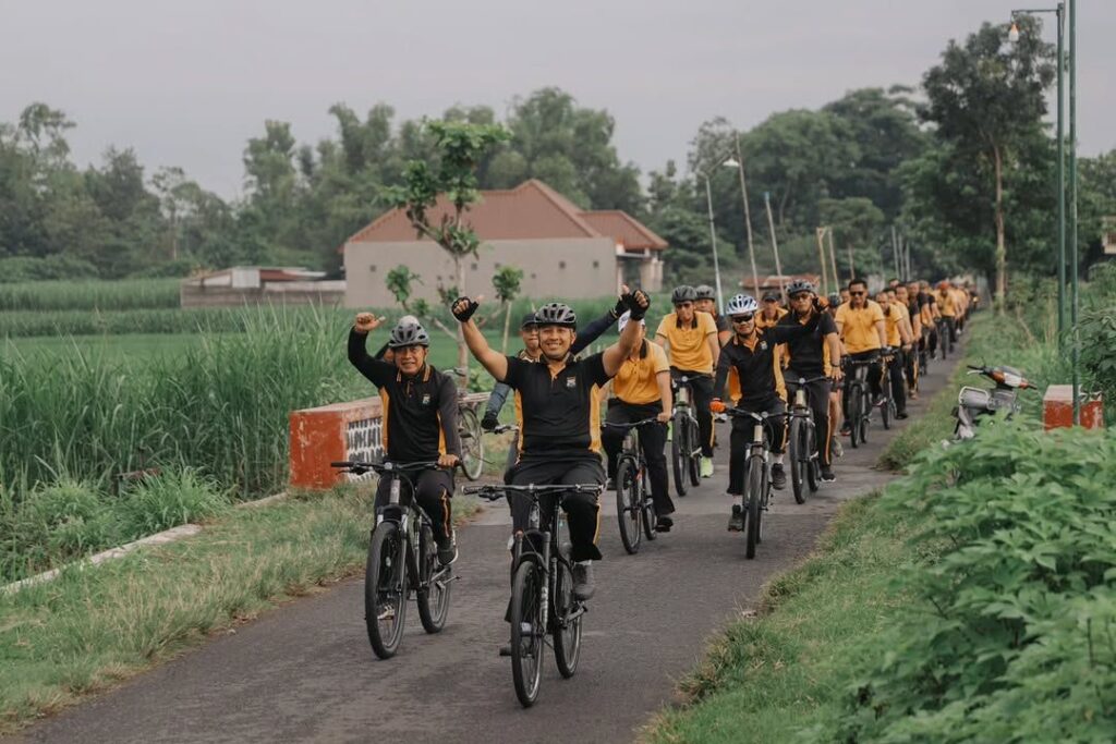 Ratusan personel Polri dan ASN Polres Kediri Polda Jatim mengikuti kegiatan olahraga bersepeda bersama Kapolres Kediri AKBP Bramastyo Priaji.