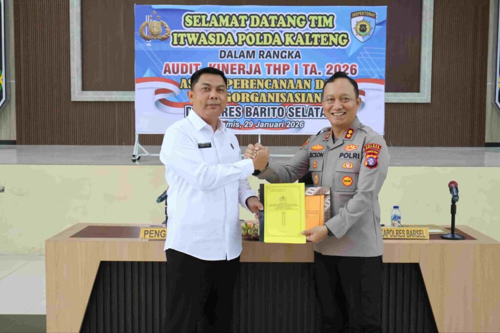 Bertempat di Aula Tantya Sudhirajati Polres Barsel telah dilaksanakan penyambutan TIM Pengawasan dan Pemeriksaan (Wasrik) Itwasda Polda Kalteng dipimpin langsung Kapolres Barsel AKBP Jecson R. Hutapea, S.I.K.,M.H didampingi Wakapolres Barsel Kompo M Tommy Palayukan, S.H.,S.I.K.,M.Si dan Pejabat Utama dan Kapolsek Jajaran. Kamis, (29/01/2026)
