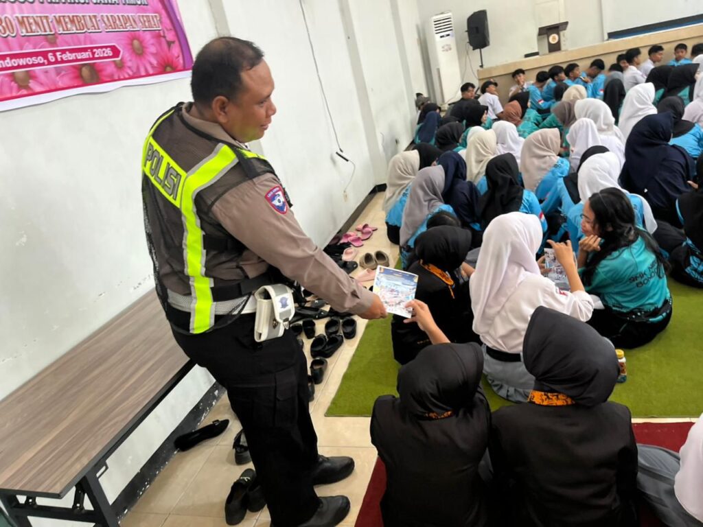 Dalam rangka Operasi Keselamatan Semeru 2026, Satuan Lalu Lintas Polres Bondowoso melaksanakan kegiatan Polantas Menyapa kepada para siswa SMKN 2 Bondowoso pada hari Selasa, 3 Februari 2026. Kegiatan ini bertujuan untuk memberikan edukasi serta menanamkan kesadaran sejak dini kepada pelajar tentang pentingnya keselamatan dan ketertiban berlalu lintas.