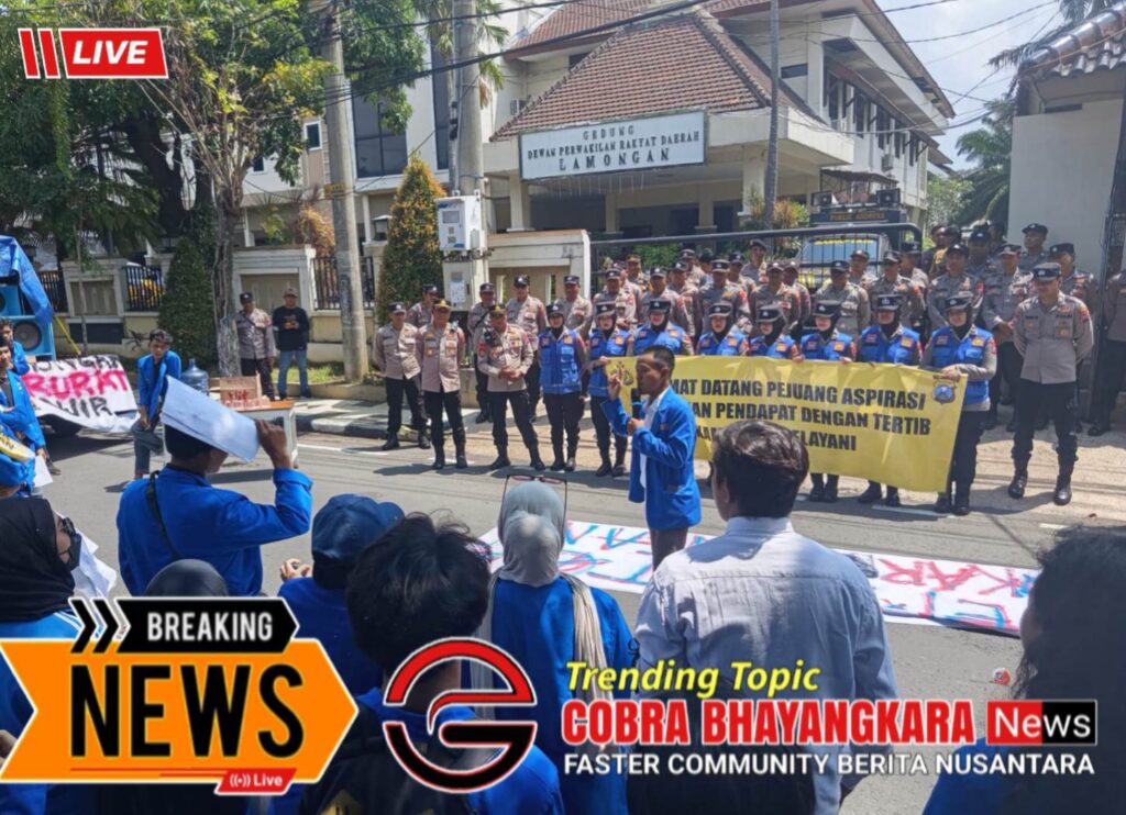 Polres Lamongan Polda Jatim memberikan pelayanan dan pengamanan secara humanis saat masa PC PMII Lamongan, menggelar aksi di Gedung DPRD Kabupaten Lamongan dan Gedung Pemerintah Kabupaten Lamongan, pada Senin (02/02).