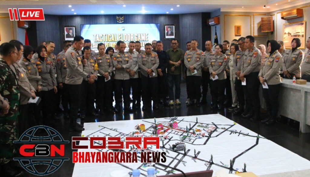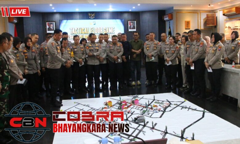 Pada H-1 kegiatan Mujahadah Kubro 1 Abad NU, Kapolresta Malang Kota, Kombes Pol Putu Kholis Aryana didampingi Kabag Ops Kompol Wiwin Rusli memimpin Tactical Floor Game (TFG) di Ballroom Sanika Satyawada, Jumat (06/02/2026).