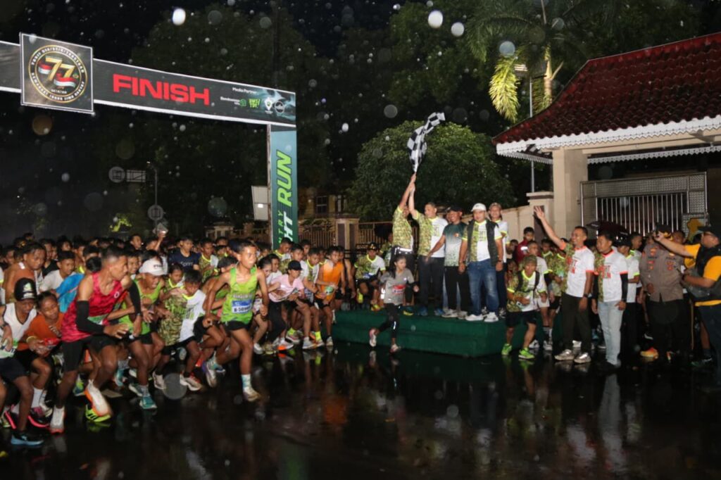 Ajang lari malam sejauh 5 kilometer ini resmi dimulai pukul 19.00 WIB dan diikuti peserta dari berbagai daerah. Selain menghadirkan sensasi lari malam yang berbeda, panitia juga menyiapkan total hadiah puluhan juta rupiah, jersey eksklusif, serta aksesori glow yang membuat suasana semakin semarak di tengah hujan.