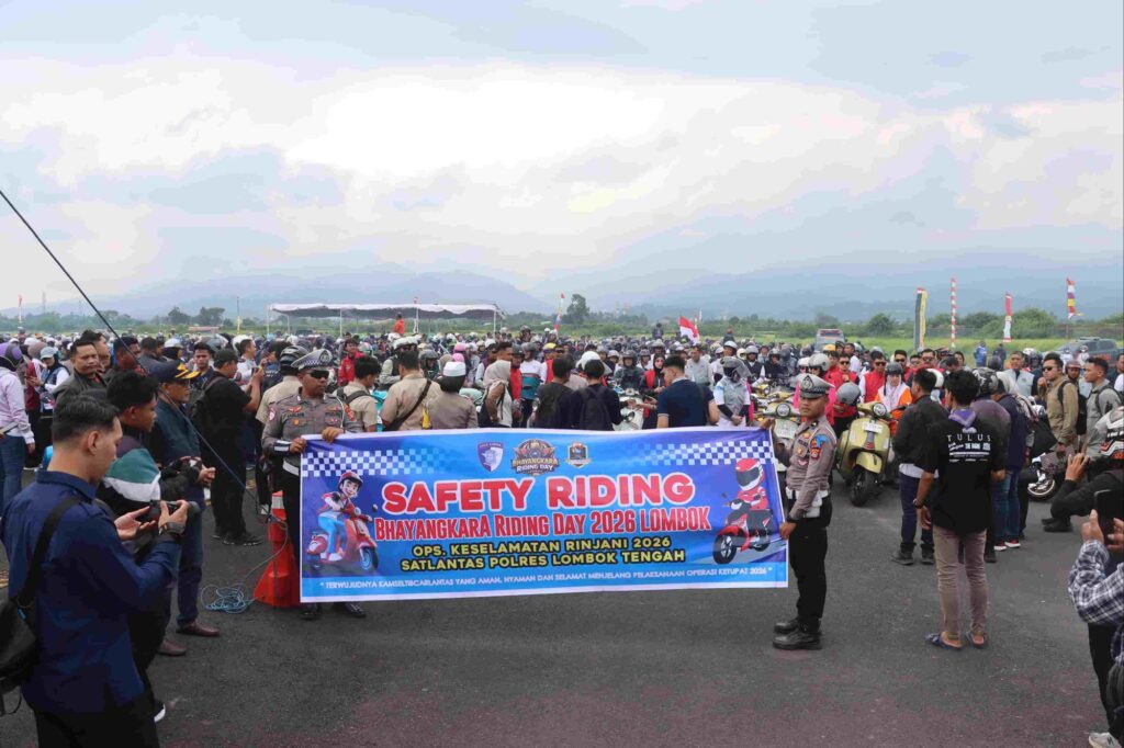Sekitar 3.500 peserta bikers dari berbagai komunitas motor memadati ajang Bhayangkara Riding Day 2026 yang digelar di eks Bandara Selaparang menuju Pantai Kuta Mandalika.