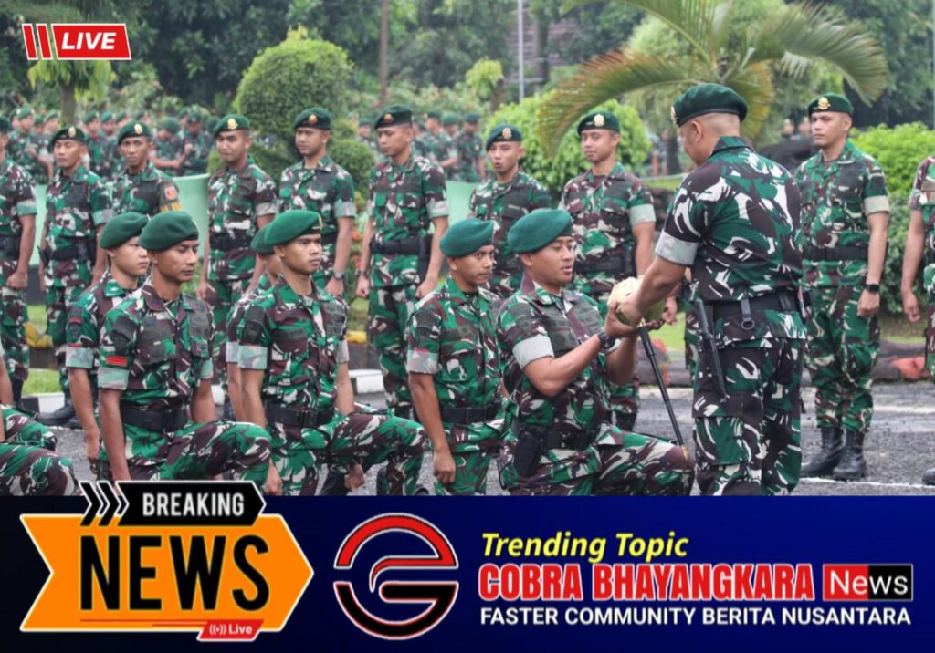 Danyonif 515 UTY/9/2 Kostrad Letkol Inf Edy Wibowo, S.Sos. menggelar tradisi penyambutan warga baru Mayor Inf Roni Bramasta Wijaya sebagai Wadanyonif 515 UTY/9/2 Kostrad beserta 8 orang lainnya yang bertempat di depan Mayonif 515 UTY Tanggul Jember. Selasa (10/02/2026).