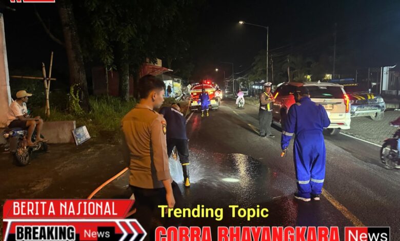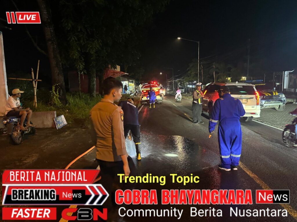 Respon cepat ditunjukkan jajaran Polsek Kalibaru, Polresta Banyuwangi, dalam menangani tumpahan solar di Jalur Provinsi Jember–Banyuwangi, tepatnya di depan Kantor Balai Desa Kalibaru Kulon, Rabu (11/2/2026) sore.