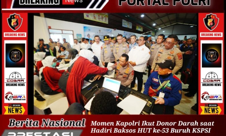 Momen Kapolri Ikut Donor Darah saat Hadiri Baksos HUT ke-53 Buruh KSPSI