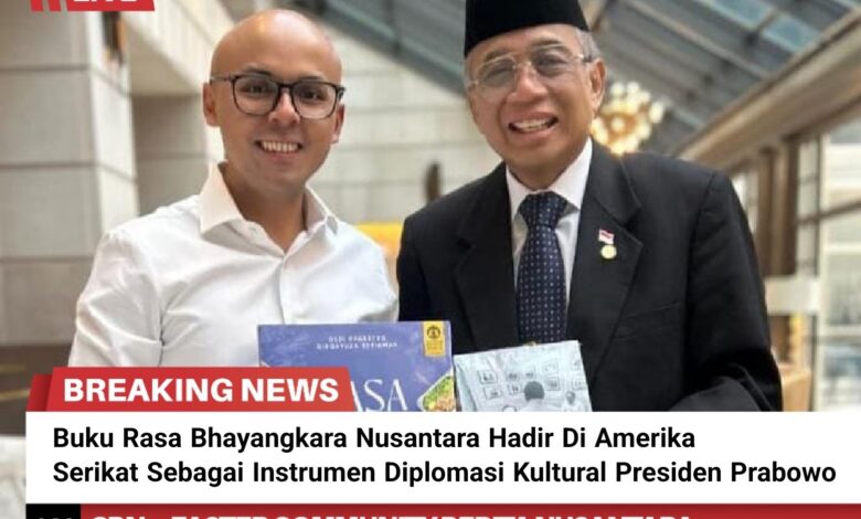 Buku Rasa Bhayangkara Nusantara versi Bahasa Inggris berjudul Taste of Nusantara: 80 Bhayangkara Menu for Indonesia’s Free Nutritious Meals Program resmi hadir di Amerika Serikat. Hari ini, Selasa (18 Februari 2026), buku tersebut diserahkan Dirgayuza setiawan Asisten Khusus Presiden RI di Washington D.C. sebagai bagian dari diplomasi kultural Presiden Republik Indonesia Prabowo Subianto, yang mengedepankan budaya, kepedulian sosial, dan pembangunan kualitas sumber daya manusia Indonesia di panggung global.