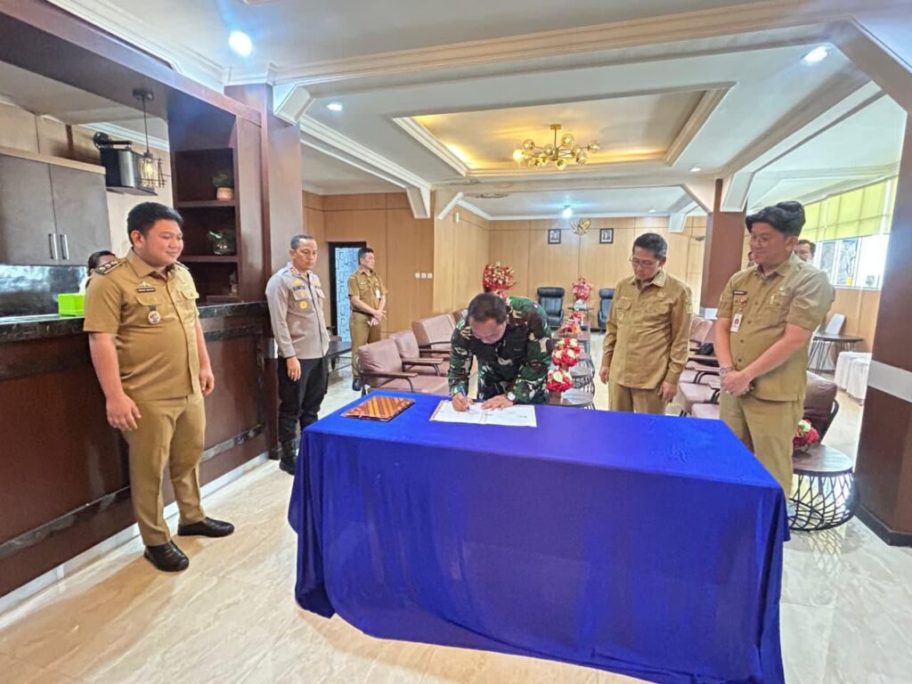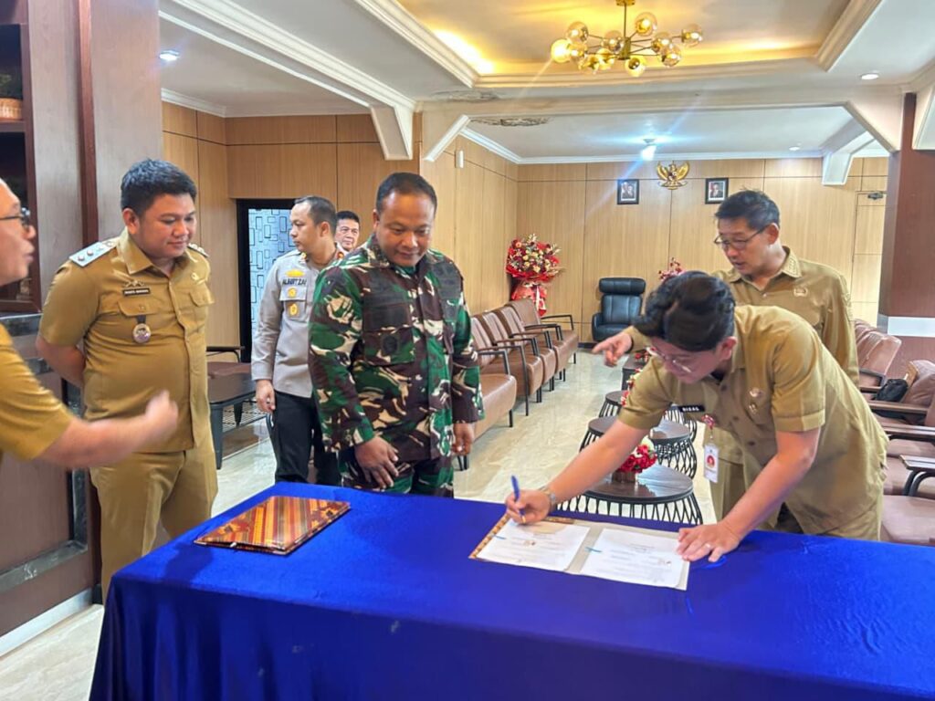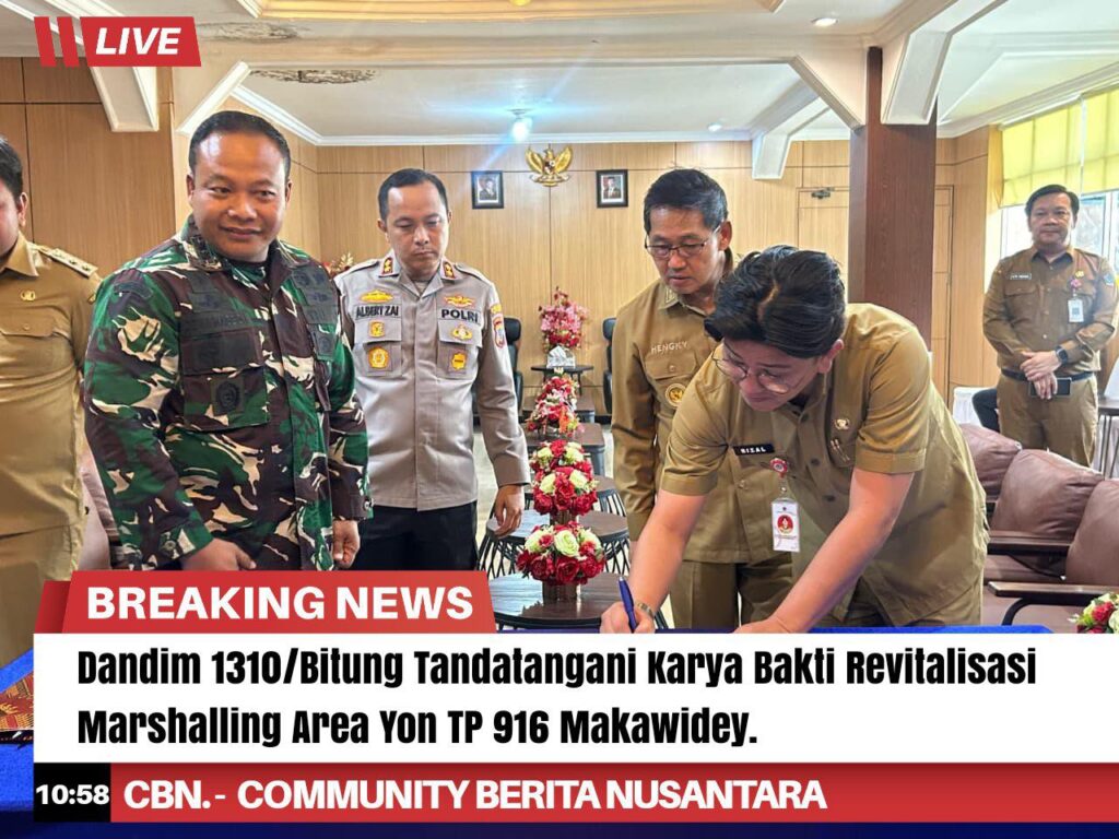 Berlangsung di Ruang Merdeka Lounge Kantor Walikota Bitung, Kel. Bitung Barat Satu, Jl. Sam Ratulangi Kec. Maesa Kota Bitung, Acara penandatangan Karya Bakti dalam rangka revitalisasi Marshalling Area (MA) Yon TP 916 Makawidey, Selasa (24/02/2026).