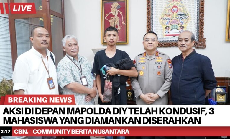 Dalam kegiatan tersebut, petugas sempat mengamankan tiga mahasiswa. Namun, ketiganya telah diserahkan kembali kepada pihak rektorat pada pukul 22.30 WIB setelah dilakukan koordinasi dengan pihak kampus.