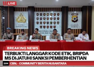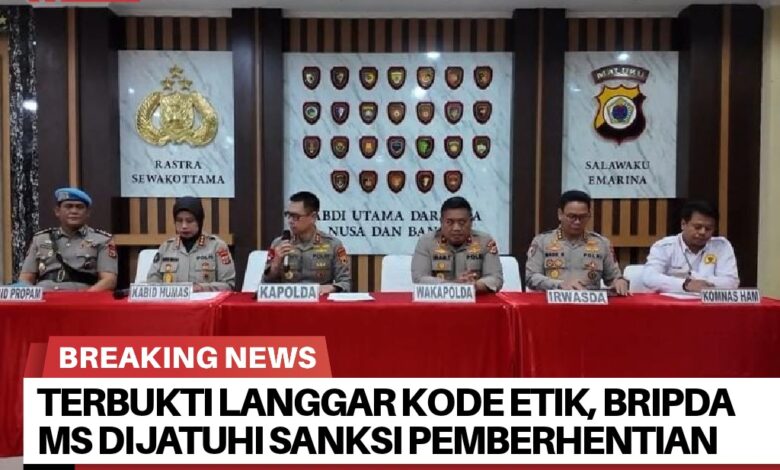 Sementara itu, Kabid Humas Polda Maluku, Rositah Umasugi menjelaskan, terduga pelanggar, oknum Bripda berinisial MS, didakwa melanggar Pasal 13 Ayat (1) Peraturan Pemerintah Nomor 1 Tahun 2003 juncto Pasal 5 Ayat (1) huruf b dan huruf c, Pasal 8 huruf c angka 1, serta Pasal 13 huruf m Peraturan Kepolisian Negara Republik Indonesia Nomor 7 Tahun 2022 tentang Kode Etik Profesi dan Komisi Kode Etik Polri.