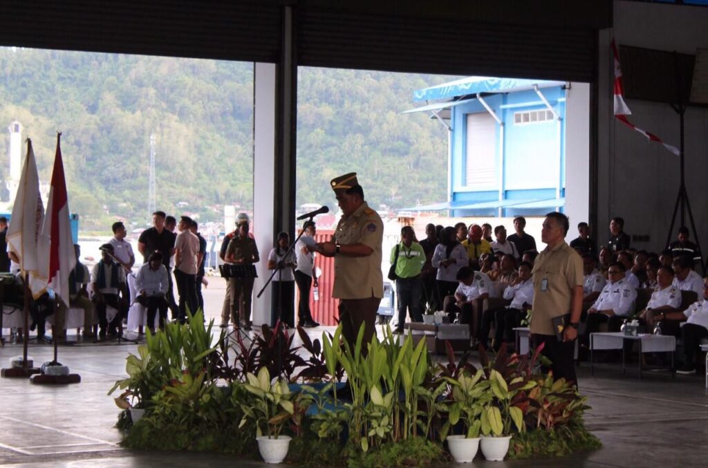 Gubernur Provinsi Sulawesi Utara Mayjen TNI (Purn) Yulius Stevanus, S.E., memimpin Apel Bulan Keselamatan dan Kesehatan Kerja (K3) Nasional Tahun 2026 tingkat Provinsi Sulawesi Utara, bertempat di PT. Pelindo Peti Kemas TPK Bitung, Jl. Samuel Languju, Kel. Aertembaga Satu, Kec. Aertembaga Kota Bitung, Rabu (25/02/2026).