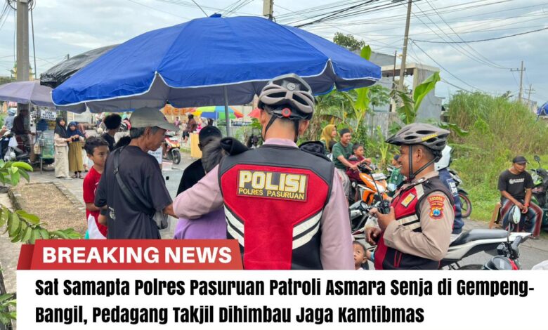 Sat Samapta Polres Pasuruan Patroli Asmara Senja di Gempeng–Bangil, Pedagang Takjil Dihimbau Jaga Kamtibmas