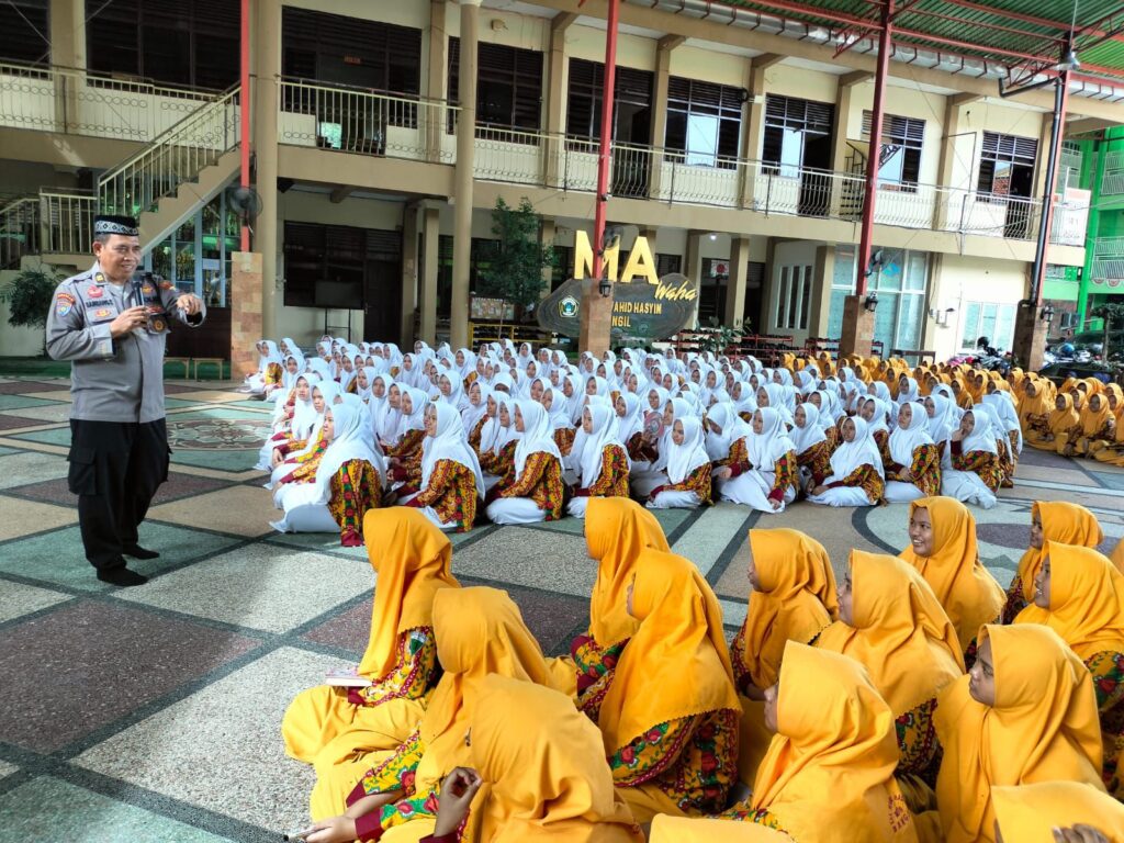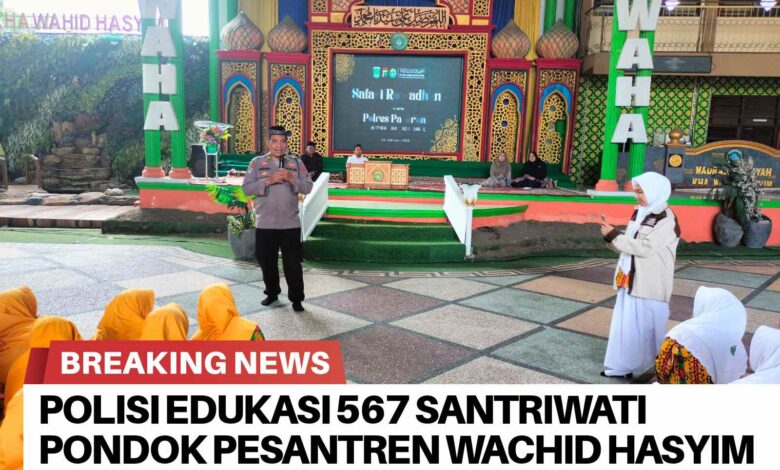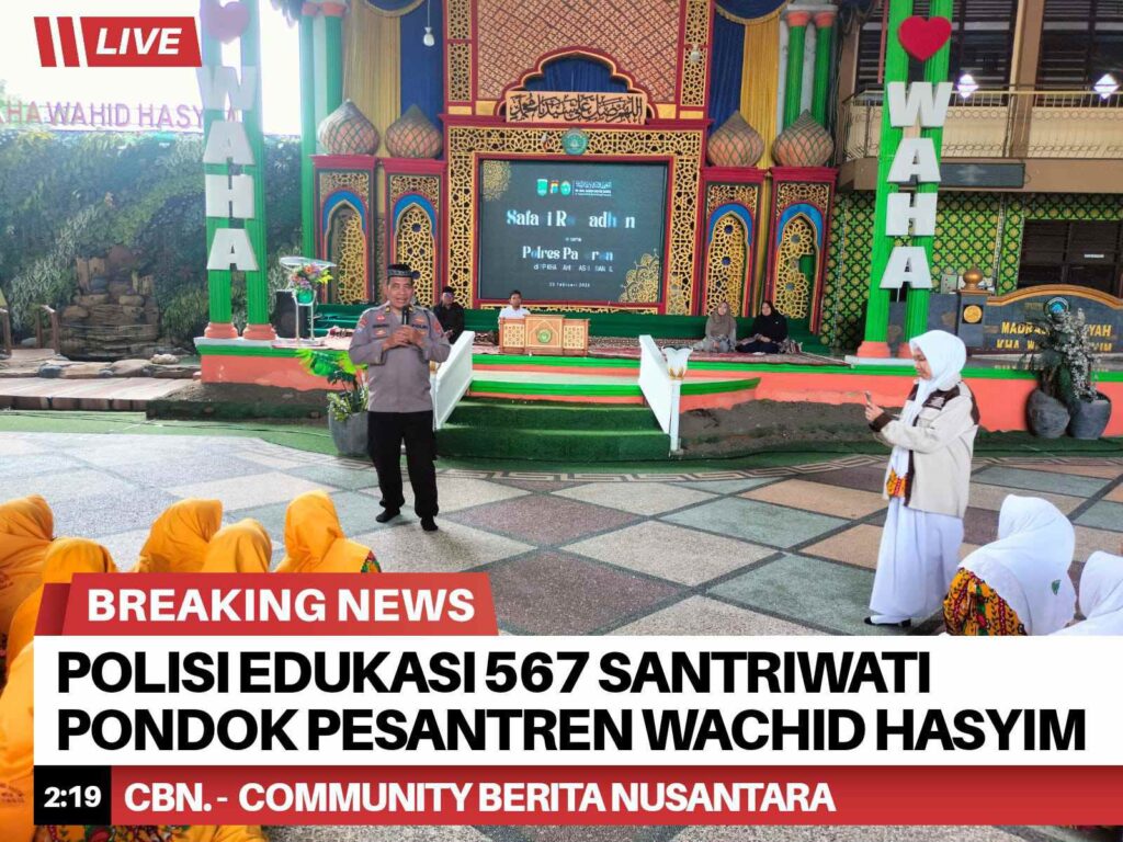 Satuan Binmas Polres Pasuruan menggelar Safari Ramadan dan penyuluhan kamtibmas kepada 567 santriwati dari jenjang MTs dan MA di Pondok Pesantren Wachid Hasyim, Bangil, Rabu (25/2/2026).