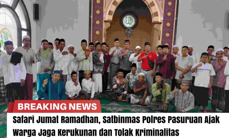 Safari Jumat Ramadhan, Satbinmas Polres Pasuruan Ajak Warga Jaga Kerukunan dan Tolak Kriminalitas
