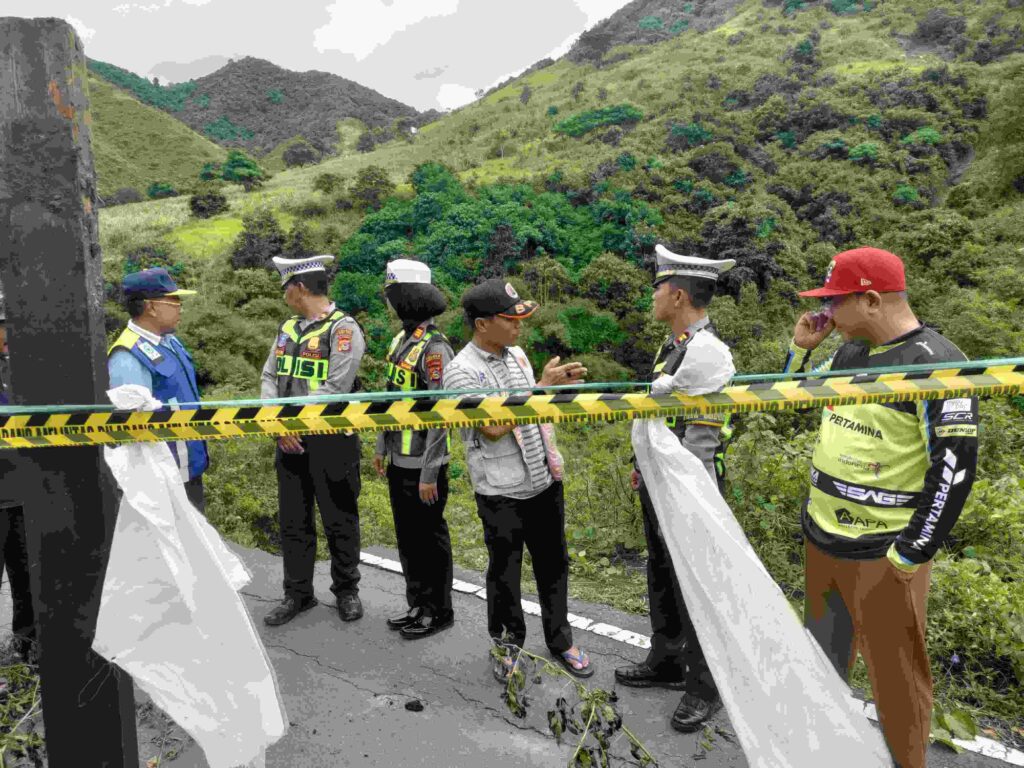 Kasat Lantas AKP Wulan Sucianur, S.Tr.K., S.I.K., M.Si menyampaikan kepada seluruh pengguna jalan, khususnya pengendara roda dua dan roda empat apabila melintas di jalan tersebut agar mengurangi kecepatan, tetap fokus, dan mematuhi rambu-rambu peringatan yang telah dipasang di sekitar lokasi jalan amblas.
