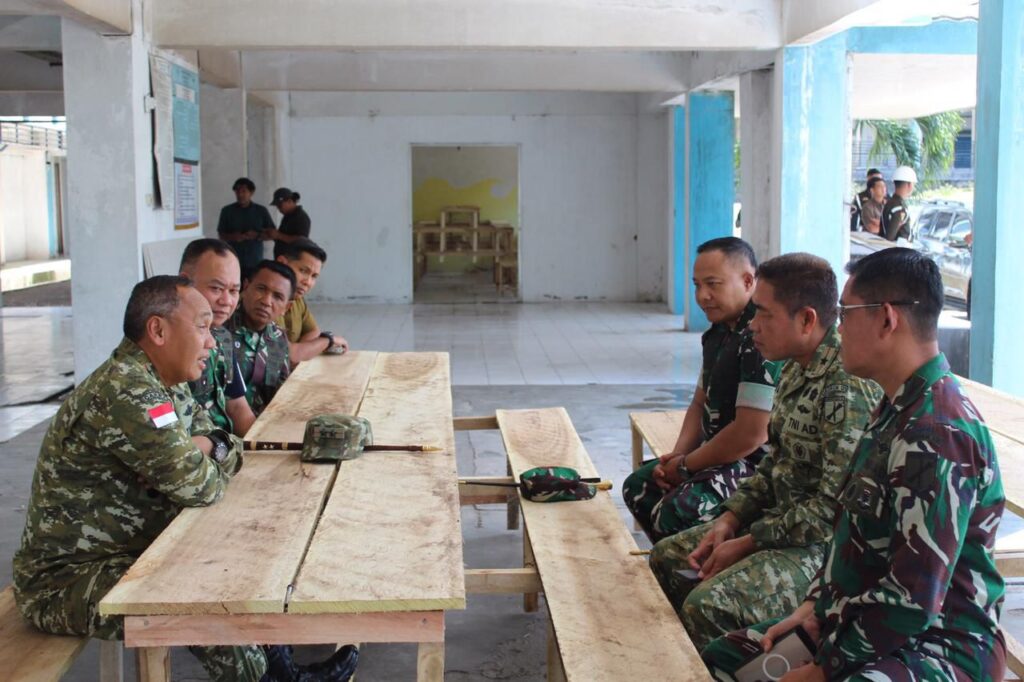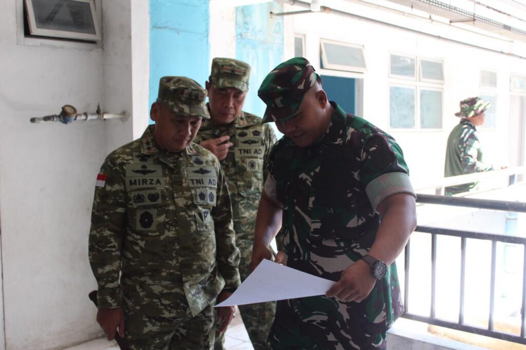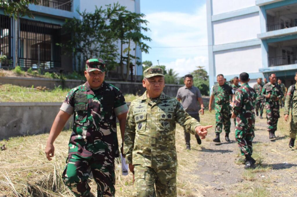 Pangdam XIII/Merdeka, Mayjen TNI Mirza Agus, S.I.P., bersama Danrem 131/Stg Brigjen TNI Martin Susilo Martopo Turnip, S.H., M.H., melakukan peninjauan lokasi Marshalling Area (MA) tempat sementara penampungan prajurit Batalyon Teritorial Pembangunan (YTP) 916/Makawidey.