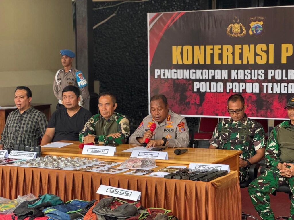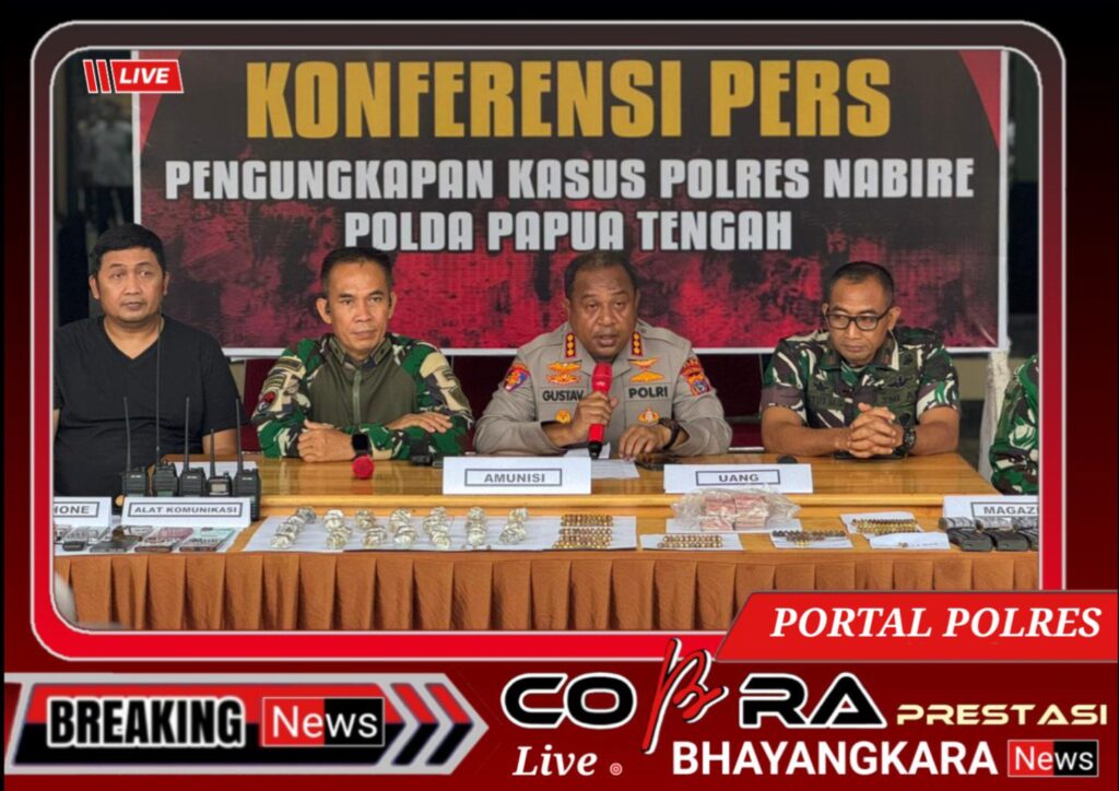 Aparat gabungan TNI-Polri menggelar konferensi pers terkait perkembangan upaya penegakan hukum terhadap target daftar pencarian orang (DPO) kelompok kriminal bersenjata (KKB) di Kabupaten Nabire yang digelar di Polres Nabire pada Senin (2/3/2026) pukul 16.00 WIT.