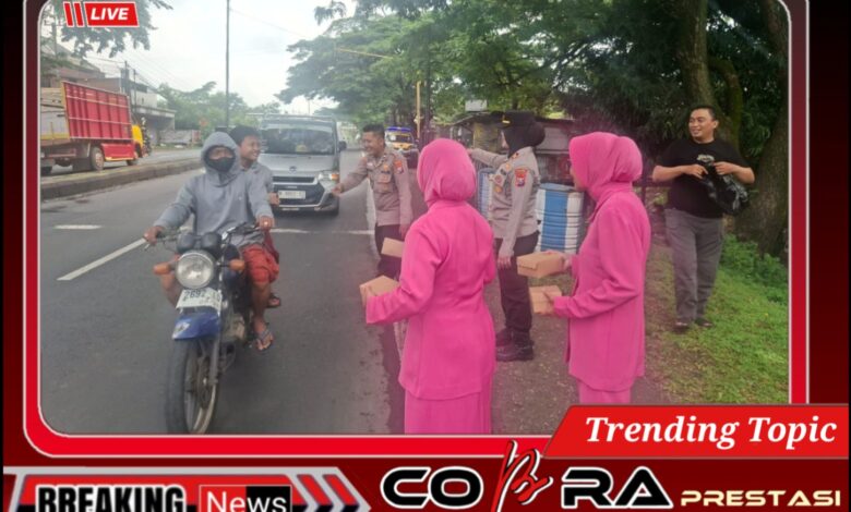 Seluruh personel Polsek bersama Bhayangkari turut turun ke jalan dengan penuh semangat dan senyum ramah untuk membagikan takjil kepada masyarakat yang masih dalam perjalanan menjelang waktu berbuka puasa.