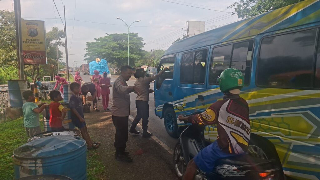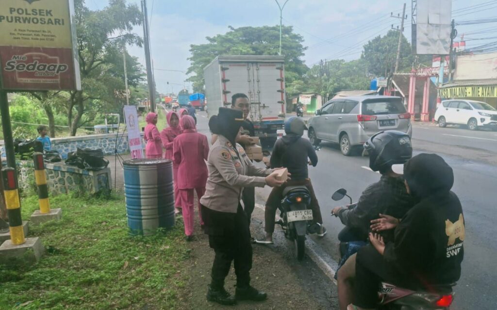 Kegiatan sosial tersebut dilaksanakan di depan Mapolsek Purwosari dan disambut antusias oleh warga serta pengguna jalan yang melintas.