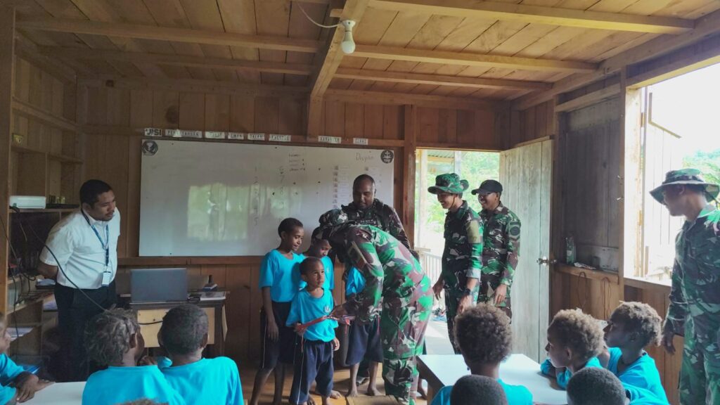 Pos Tarup Yonif 751/Vira Jaya Sakti (VJS) Satgas Swasembada melaksanakan kegiatan pembinaan teritorial (Binter) dengan membagikan perlengkapan sekolah kepada siswa-siswi TK Firman. Kegiatan ini merupakan wujud kepedulian TNI dalam mendukung pendidikan anak usia dini sekaligus menumbuhkan semangat belajar di wilayah perbatasan. (Rabu,4/3/2026).