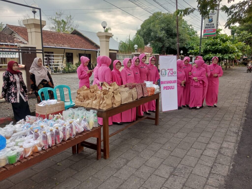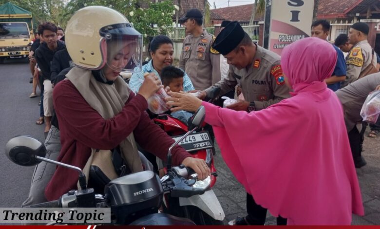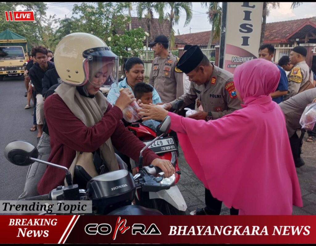 Kapolsek Muncar AKP Mujiono, S.Sos bersama anggota Polsek Muncar serta Bhayangkari turun langsung membagikan takjil kepada para pengendara yang melintas. Takjil yang dibagikan berupa nasi, kue, dan minuman untuk berbuka puasa.