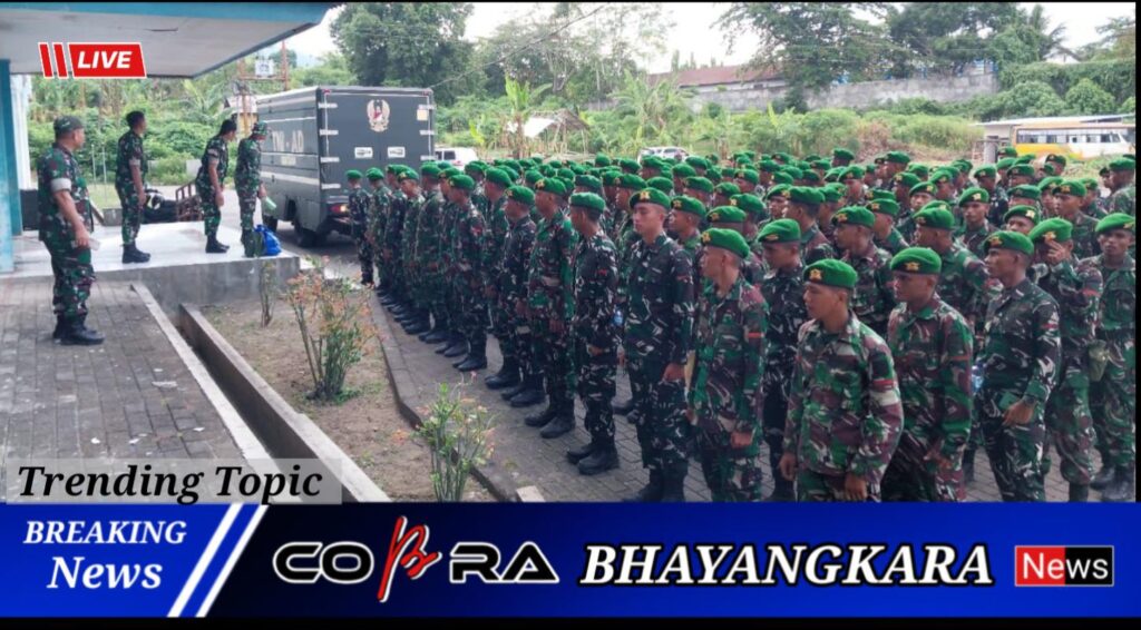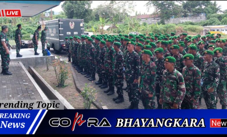 Komandan Kodim 1310/Bitung Letkol Inf Dewa Made DJ, sambut prajurit Yonif TP 916/SDY Kodam XIII/Merdeka bertempat di lokasi Marshalling Area (MA), Rusunawa Tangkoko, Kel. Manembo Nembo Tengah Kec. Matuari Kota Bitung, Minggu (08/03/2026).