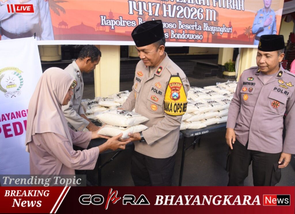 Bulan suci Ramadhan selalu menjadi momentum istimewa untuk menebar kepedulian dan memperkuat nilai kebersamaan. Semangat berbagi itu kembali diwujudkan oleh jajaran Kepolisian Resor Bondowoso melalui kegiatan penyaluran zakat kepada masyarakat yang membutuhkan.
