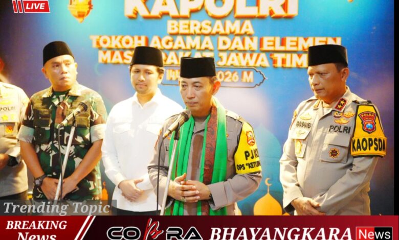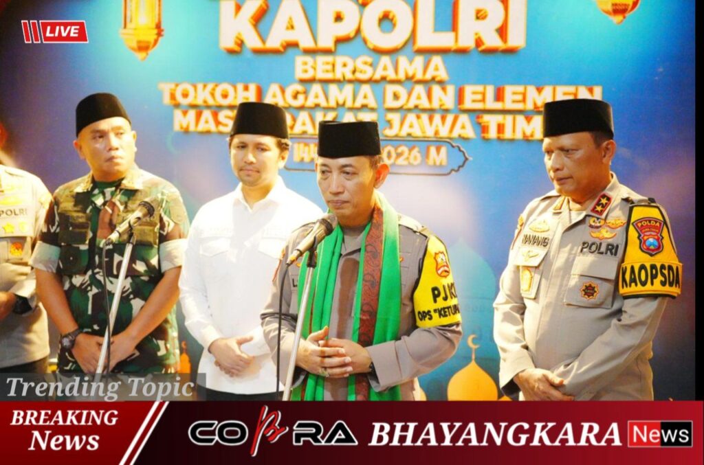Kapolri Jenderal Listyo Sigit Prabowo menghadiri kegiatan safari ramadhan di Mapolda Jawa Timur (Jatim). Dalam kesempatan itu, Sigit menekankan pentingnya seluruh elemen bersatu untuk menjaga kamtibmas hingga menyukseskan seluruh program Presiden Prabowo Subianto.