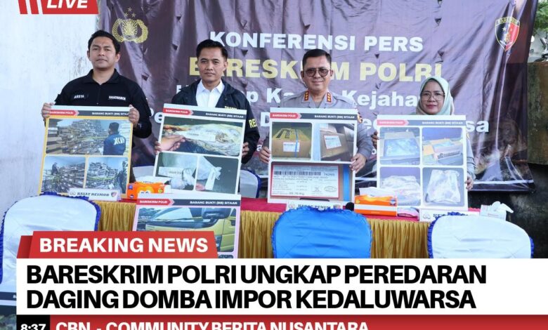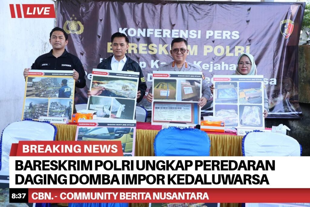 Bareskrim Polri mengungkap kasus dugaan tindak pidana perlindungan konsumen dan pangan terkait peredaran daging domba impor kedaluwarsa di wilayah Tangerang. Pengungkapan kasus tersebut disampaikan dalam konferensi pers yang digelar di Gudang PT Lang-Lang Buana, Jalan Raya Serang No.8, Cibadak, Cikupa, Tangerang, Senin (16/3/2026).