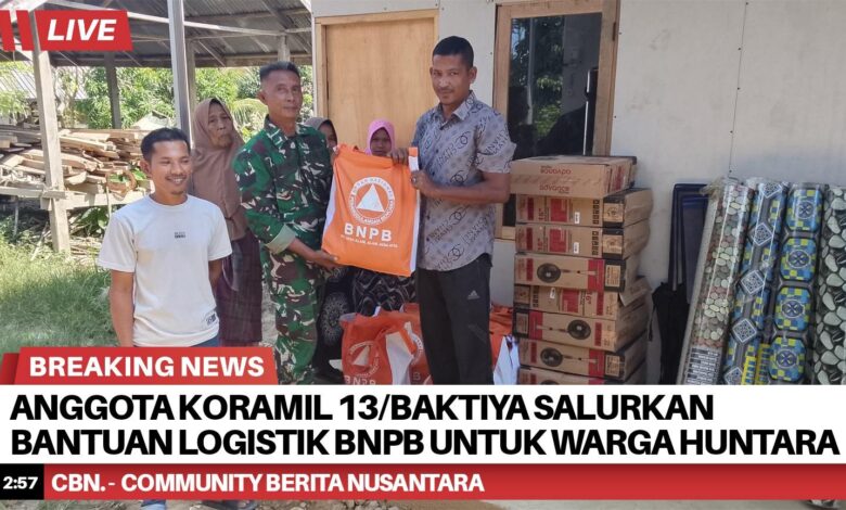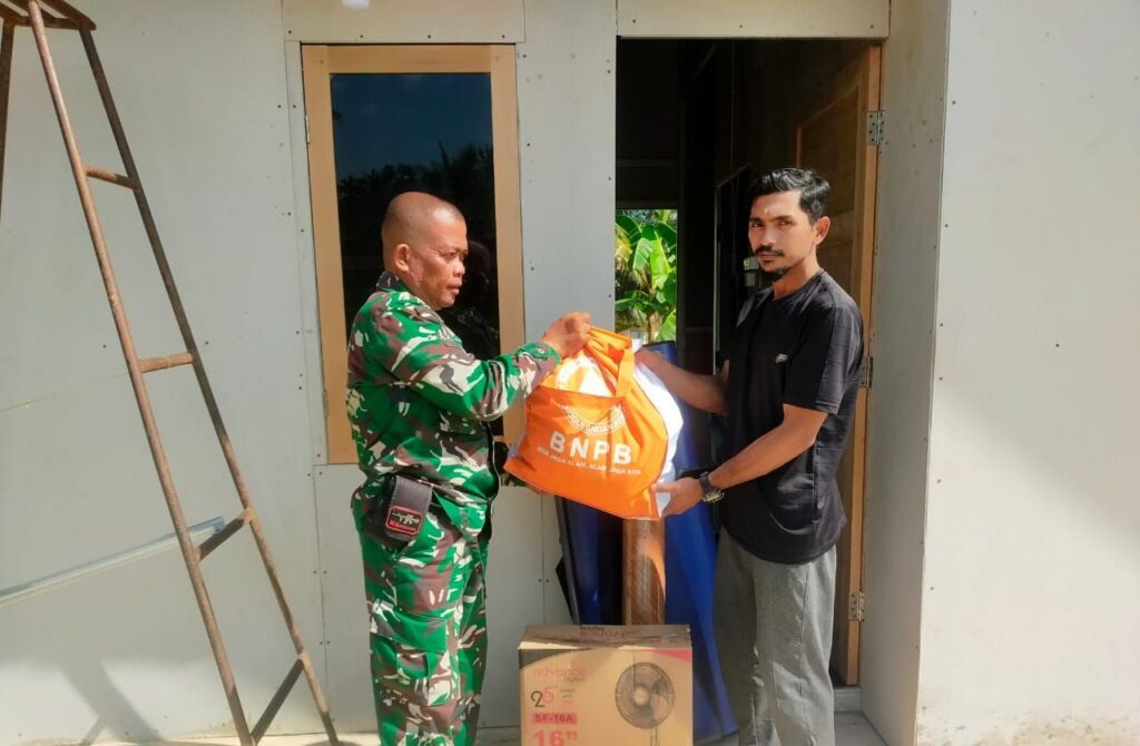 Anggota Koramil 13/Baktiya Salurkan Bantuan Logistik BNPB untuk Warga Huntara
