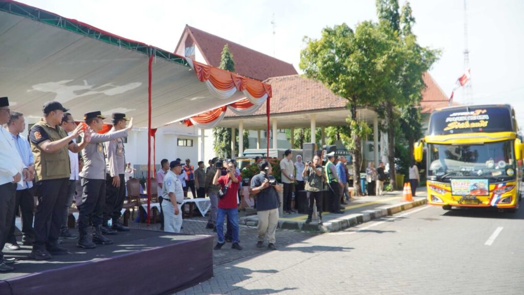 Polres Pasuruan berkolaborasi dengan Pemerintah Kabupaten Pasuruan memberangkatkan ratusan warga dalam program mudik gratis Lebaran 2026, Rabu (18/3/2026) pagi.