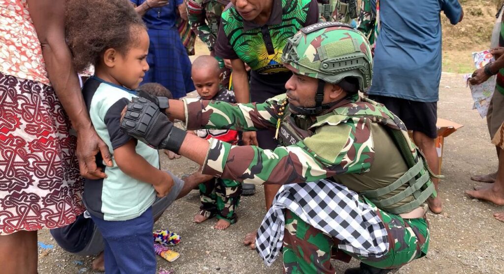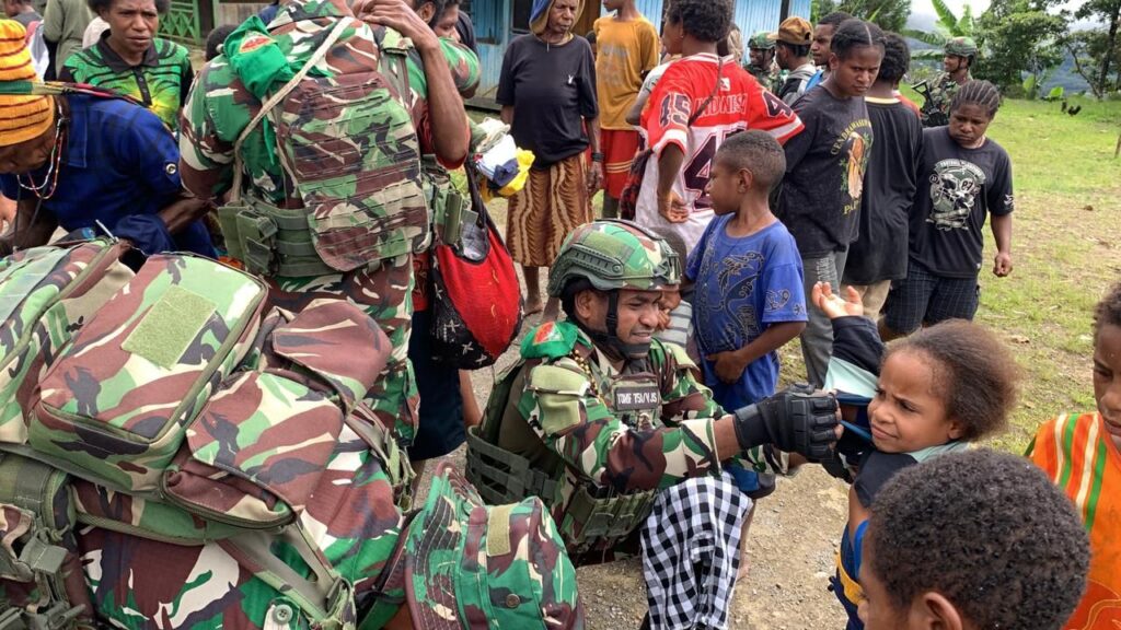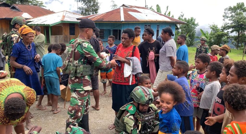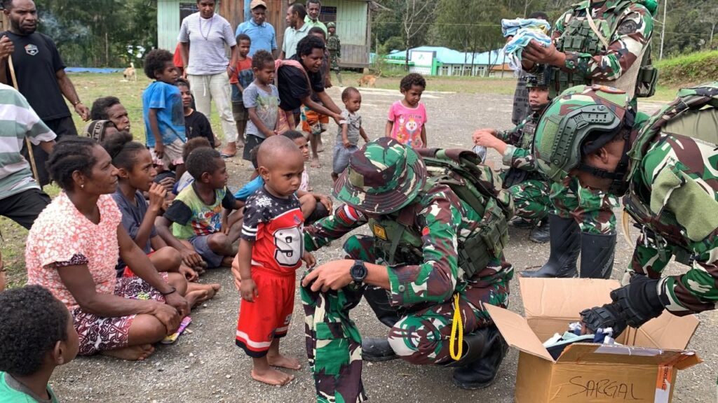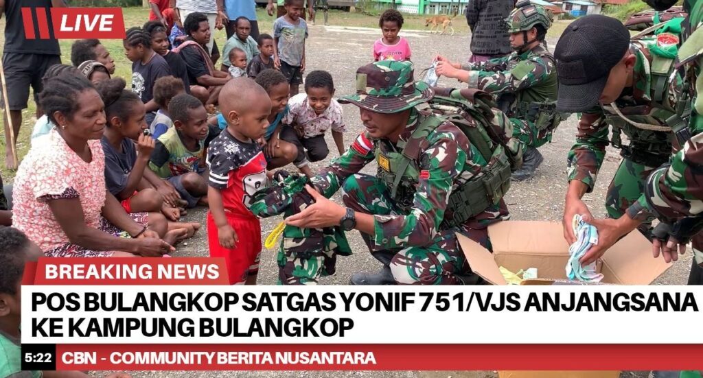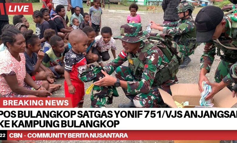 Bulangkop, Pegunungan Bintang — Pos Bulangkop Satgas Pamtas RI–PNG Yonif 751/Vira Jaya Sakti (VJS) melaksanakan kegiatan anjangsana ke Kampung Bulangkop sebagai wujud pembinaan teritorial yang humanis dan bentuk kepedulian terhadap masyarakat di wilayah binaan. Dalam kegiatan tersebut, prajurit membagikan baju layak pakai kepada warga Kampung Bulangkop, baik anak-anak maupun orang dewasa. (Minggu, 22/3/2026).