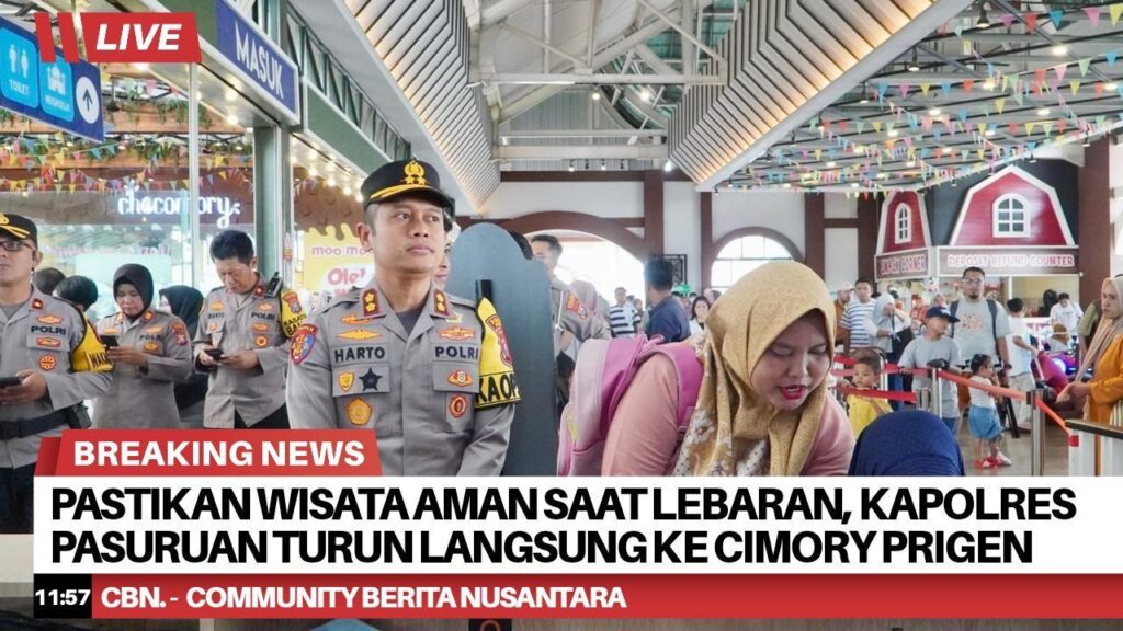 Memastikan keamanan dan kenyamanan masyarakat dan wisatawan selama libur Iedul Fitri 1447 H, Kapolres Pasuruan Harto Agung Cahyono turun langsung melakukan pengecekan pengamanan di objek wisata Cimory Prigen, Selasa (24/3/2026).
